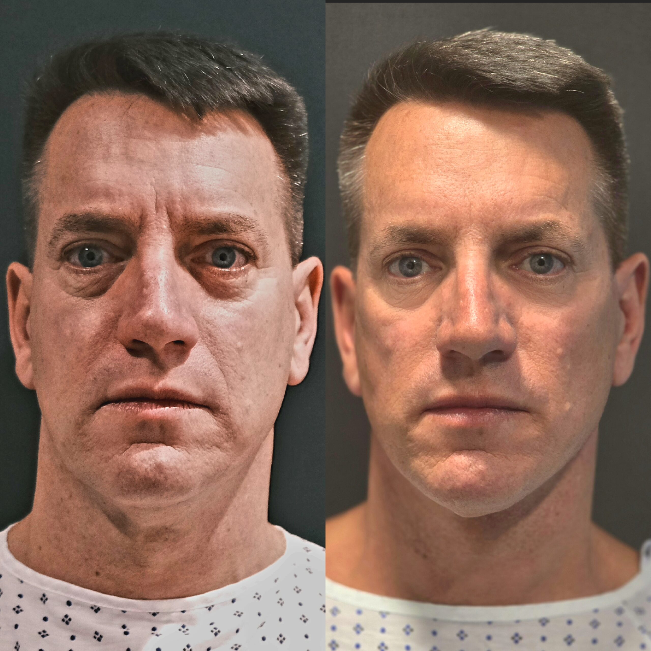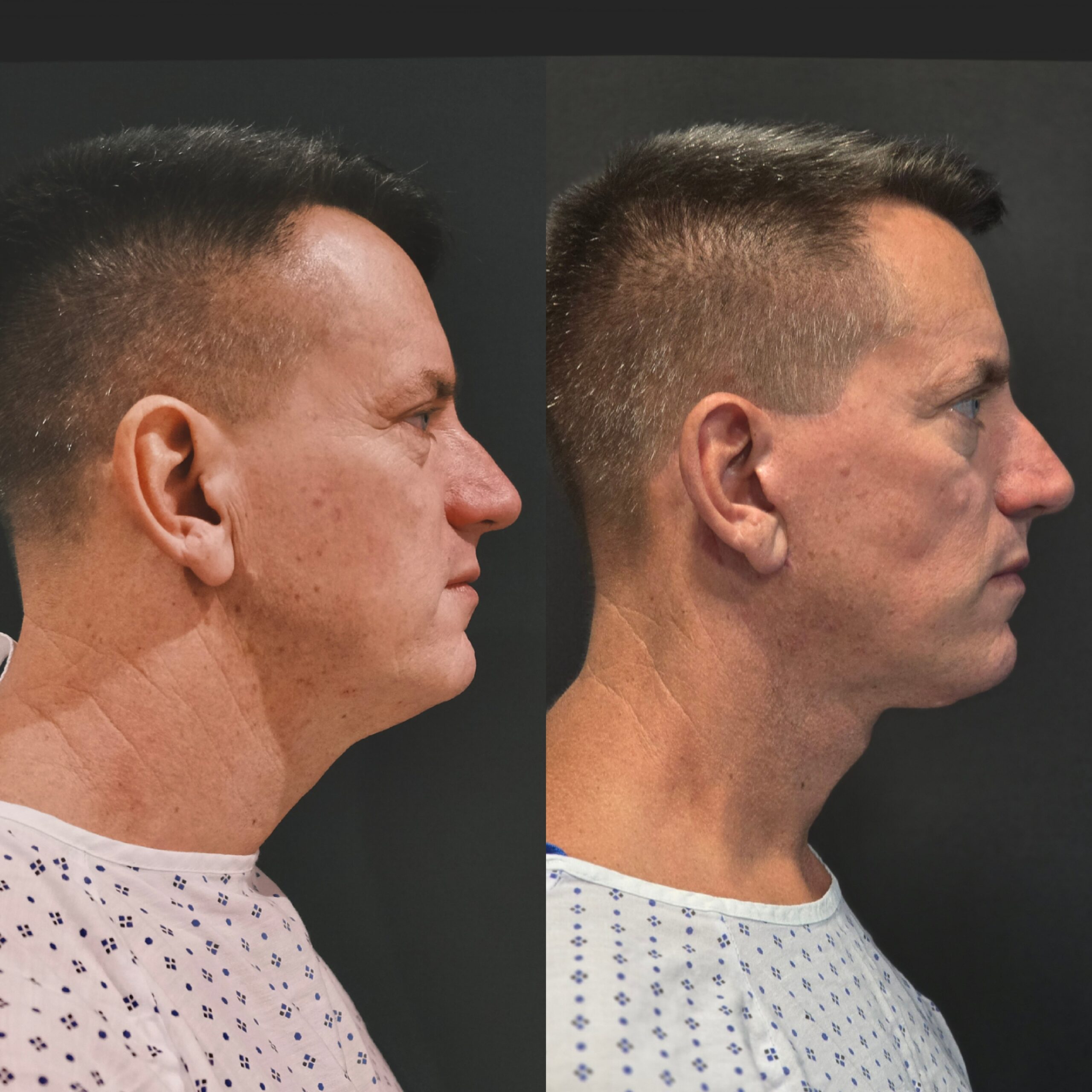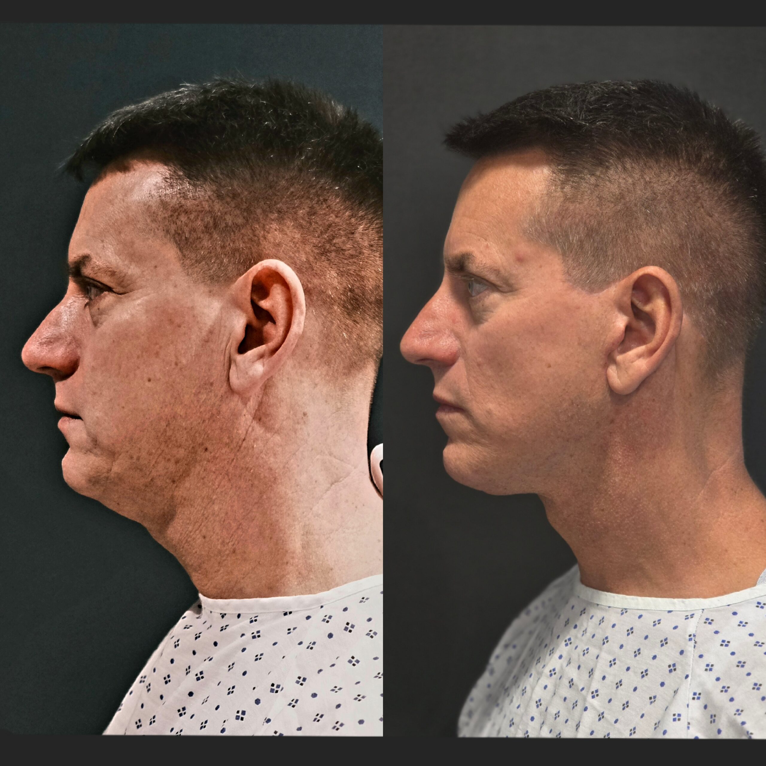 - After: Significant improvement in jawline definition, smoothness around the neck, and restored youthful contours in the mid-face.